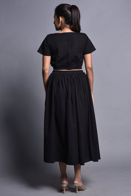 Black Cropped Blouse with Elbow Sleeves and Soft Square Neckline