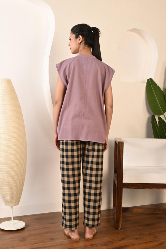 Violet Ash Sleeveless Top with Mandarin Collar and Half Button Placket