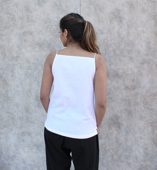 White Sleeveless Linen Camisole