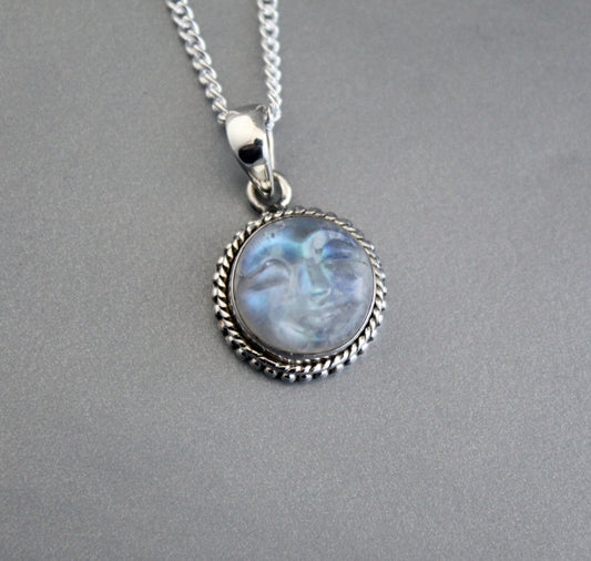 Amethyst Necklace, Moon Face Pendant