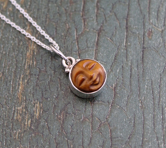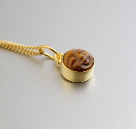 Dainty Tigers Eye Necklace, Moon Necklace