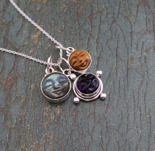 Labradorite Necklace, Amethyst Necklace, Tigers Eye Necklace, Moon Face Necklace