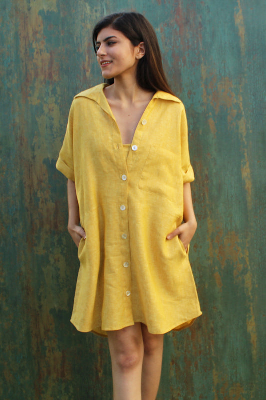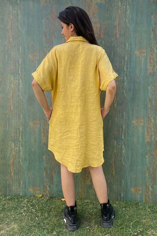 Honey Linen Button-Down Shirt Dress