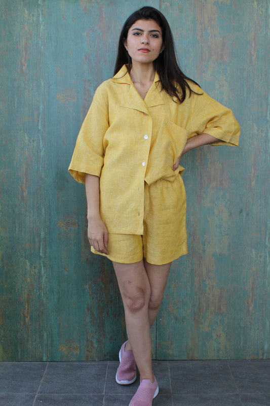 Details Loose-fit silhouette crafted from breathable medium-weight linen Mandarin collar with a full front button placket Dropped shoulders with wide long sleeves for relaxed ease Curved hemline with side slits for effortless movement Single front pocket adding a functional touch **Looking for something unique?...- $69.00