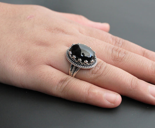 Description Black Onyx is a stone for strength, hardiness, constancy, grounding, stamina, and self-control.✦Gemstone : Black Onyx *may contain natural inclusions✦Shape: Oval Cabochon✦Metal: 925 Sterling Silve Natural stones may vary slightly in shape, size and color.Handmade ItemYou will receive the same piece as in...- $34.00