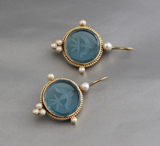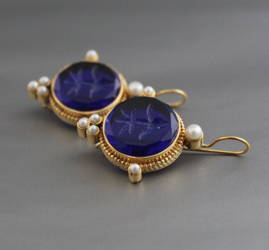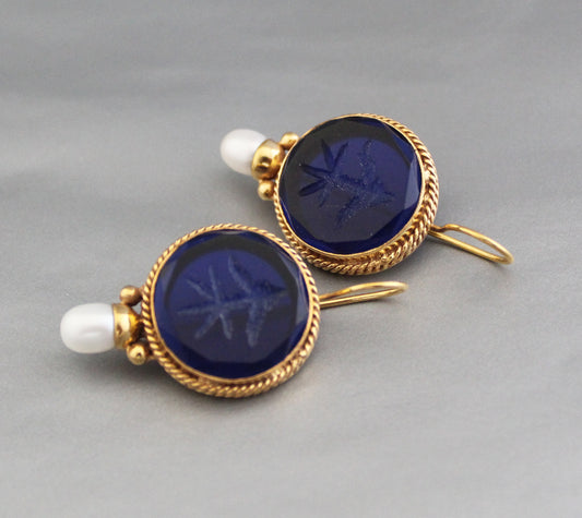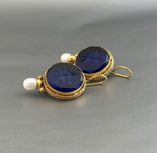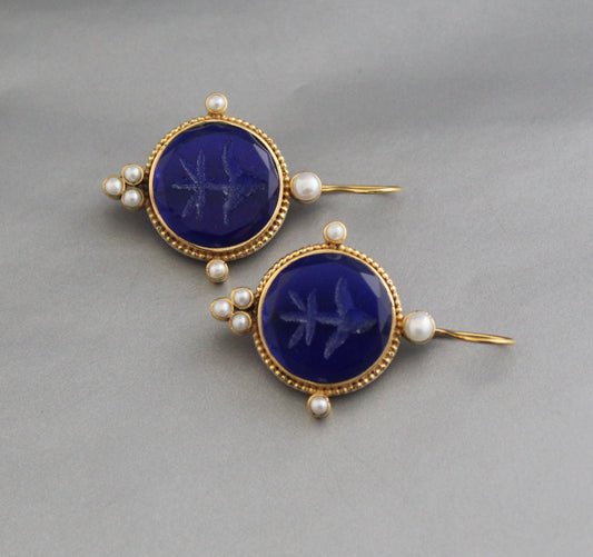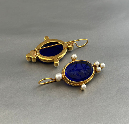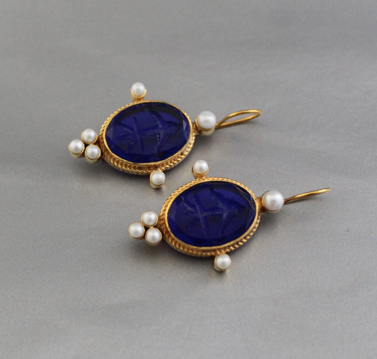 Indigo Blue Intaglio Ancient Earrings - Indigo Blue