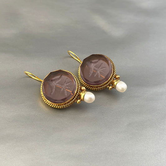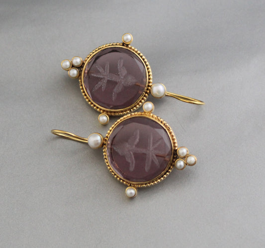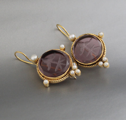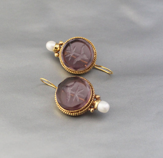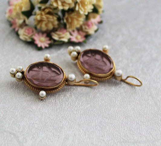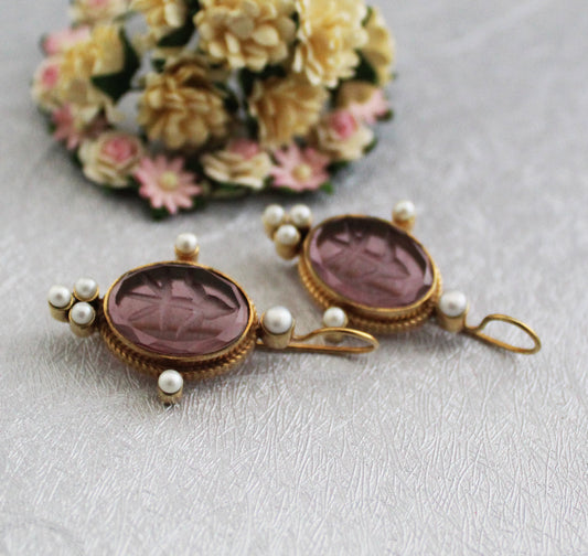Purple Intaglio Vintage Earrings - Purple