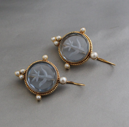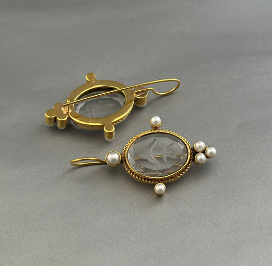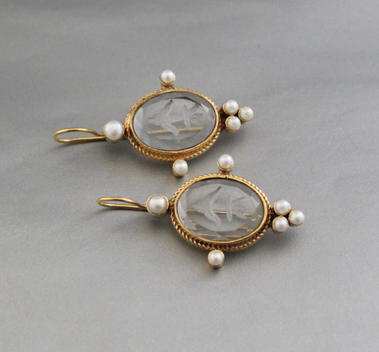 Clear Crystal Intaglio Earrings, Ancient Antique Jewelry