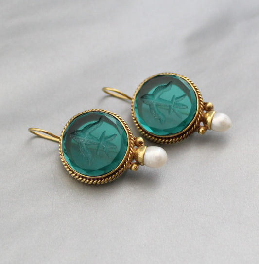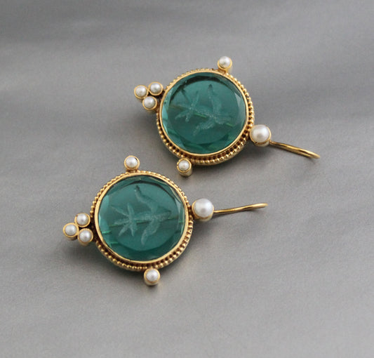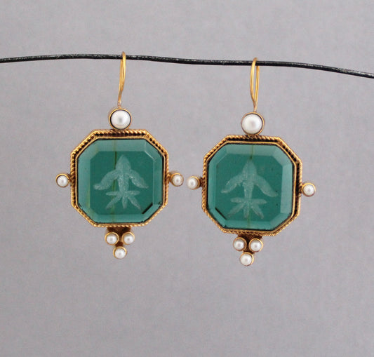 Green Intaglio Antique Earrings - Green