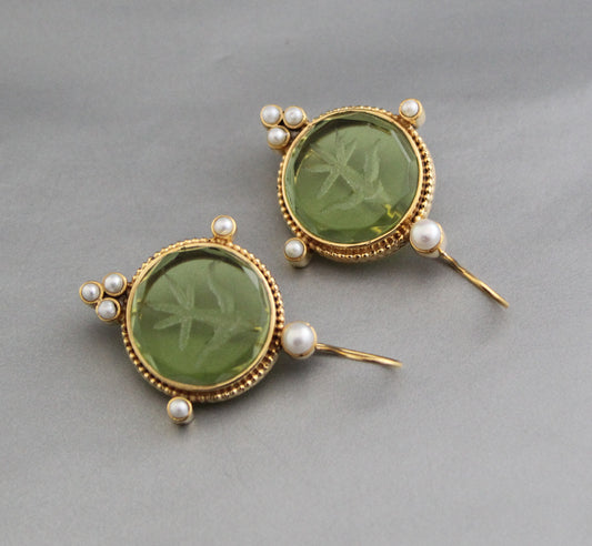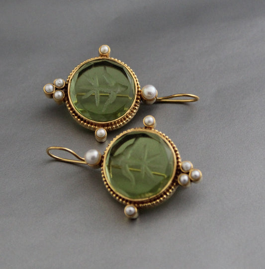 Olive Green Intaglio Ancient Earrings - Olive Green