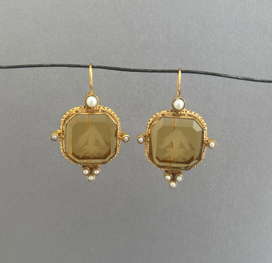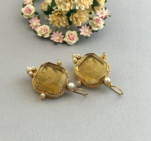 Yellow Intaglio Earrings, Art Deco Jewelry - Yellow