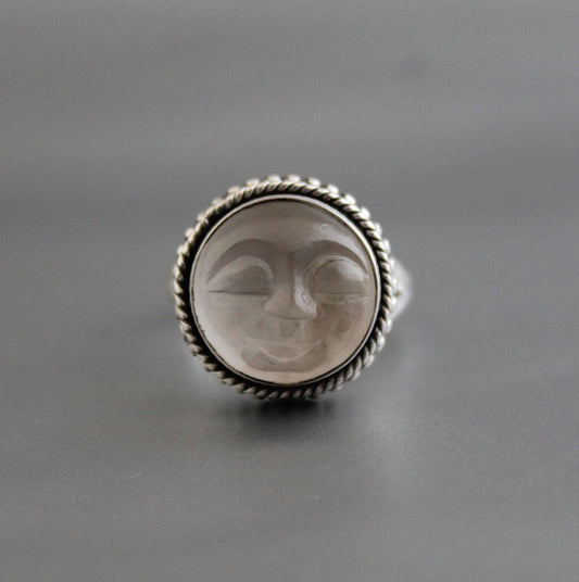 Clear Crystal Moon Face Ring