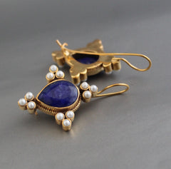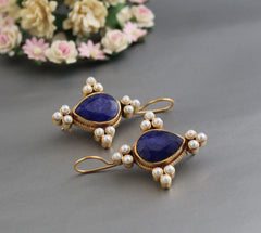 Blue Sapphire Earrings, Edwardian Pearl Jewelry