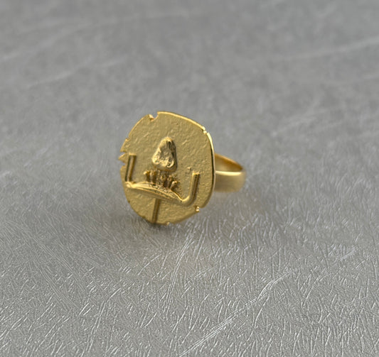 Ancient Old Intaglio Brass Ring, Roman Coin