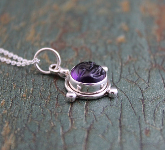 Description Healing with Amethyst♥ Increases nobility ♥ Spiritual awareness ♥ Psychic abilities ♥ Inner peace and healing ♥ Healing of body, mind & soul ♥ Positive transformation ♥ Meditation ♥ Balance ♥ Relieves stress ♥ Communication ✦Gemstone: Natural Amethyst✦Stone Cut: Round Carved✦Stone Size: Approximately...- $32.00