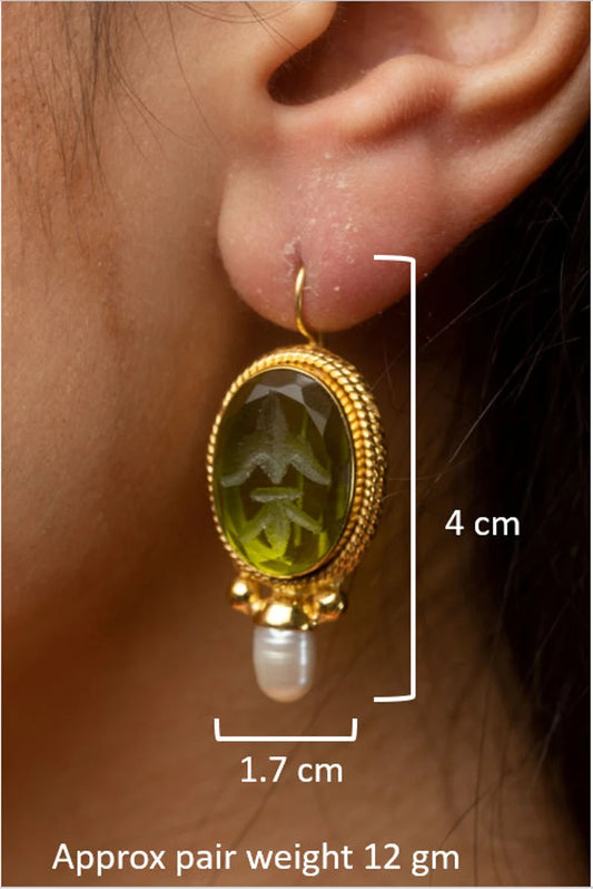 Description Gemstone - Quartz Material - Brass Gemstone Size - 13X18 mm Earring Height Including Hoop - 3 cm Earring Width - 1.7 cm Finish - Smooth and high polished with brilliant shine. Natural stones may vary slightly in shape, size and color.Handmade Item...- $35.00