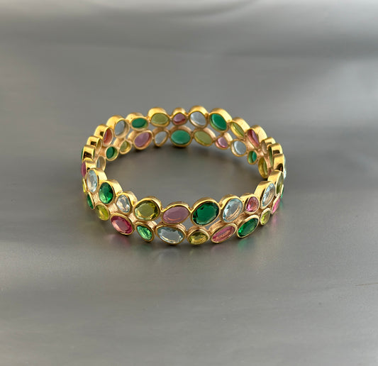 Description Beautiful Multi Stone Bangle.✦Gemstone: All Hydro Glass Stone Used✦Stone Cut: Irregular✦Stone Size : 6-8 mm✦Bangle Width : Approximately 14 mm✦Metal: 925 Sterling Silver Bangle Size ( Please confirm your size after viewing reference picture in the Listing )6 Inches Circumference - 5 Cm...- $175.00