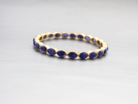 Description Beautiful Dyed Blue Sapphire cabochon Gold Plated Bangle. ✦Gemstone: Dyed Blue Sapphire✦Stone Cut: Oval Cabochon✦Stone Shape : 5X7 Oval cabochon✦Bangle Width : Approximately 7 mm✦Metal: Micron Gold Plated Bangle Size ( Please confirm your size after viewing reference picture in the Listing )6...- $88.00