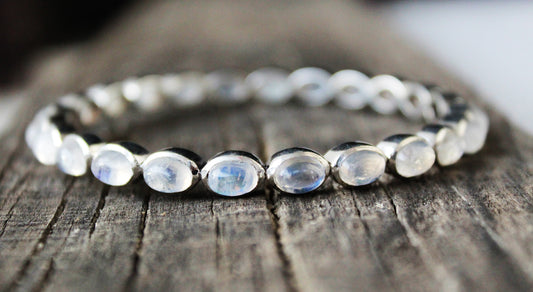 Description Beautiful Rainbow Moonstone cabochon Bangle.✦Gemstone: Natural Rainbow Moonstone✦Stone Cut: Cabochon✦Stone Shape : 5X7 Oval cabochon✦Bangle Width : Approximately 5 mm✦Metal: 925 Sterling Silver Bangle Size ( Please confirm your size after viewing reference picture in the Listing )6 Inches Circumference - 5 Cm...- $88.00
