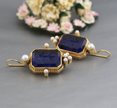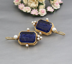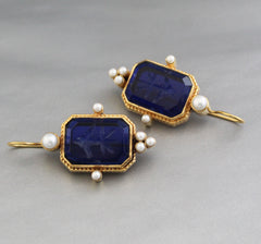 Dark Blue Intaglio Earrings