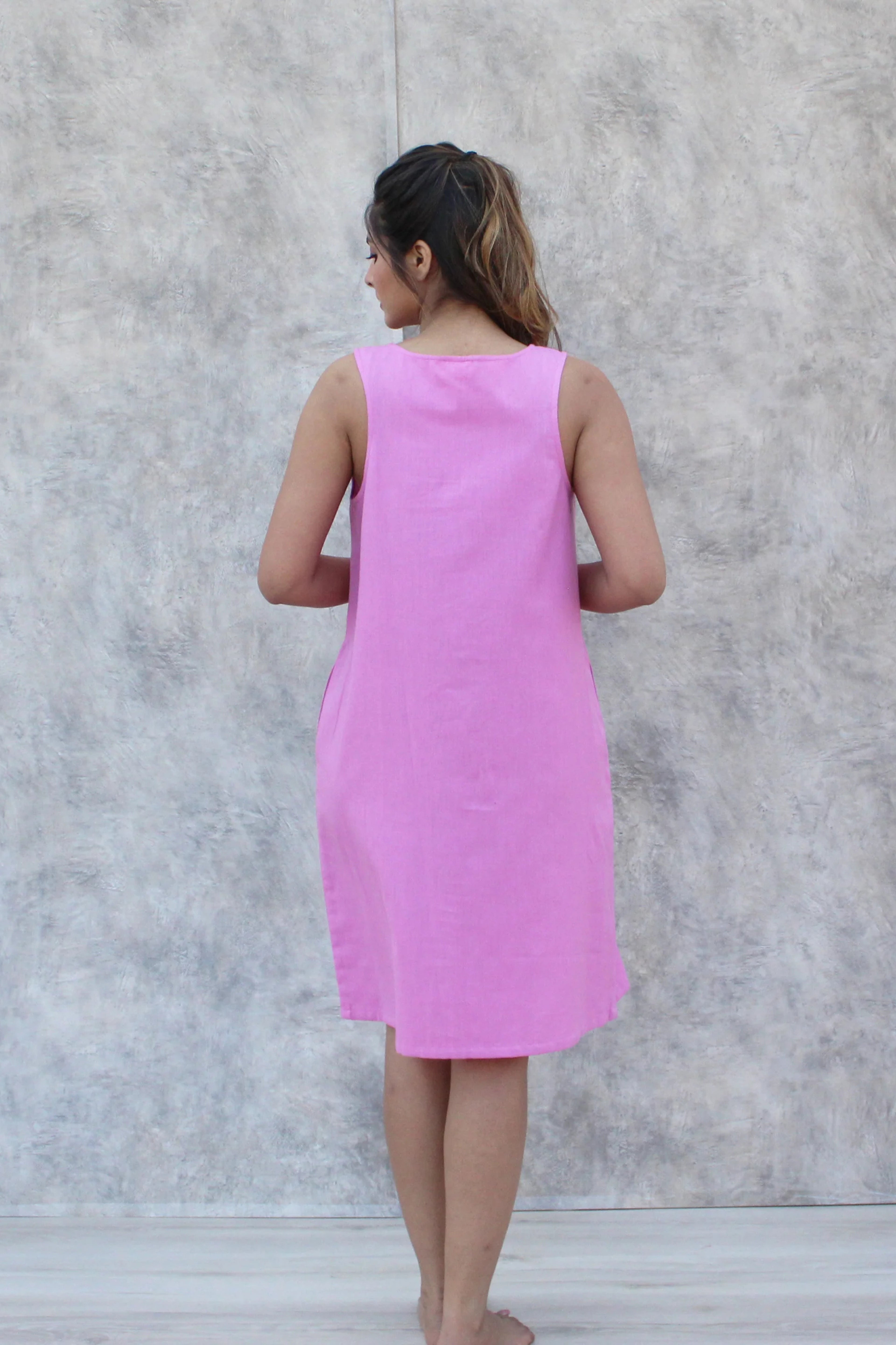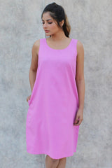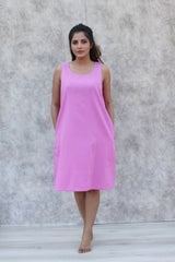 Dusty Pink Sleeveless Knee-Length Dress with Scoop Neck