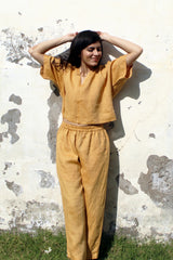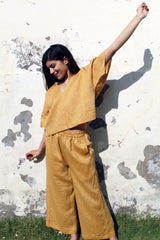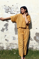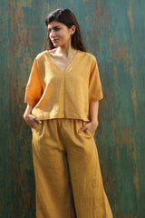 Honey Co-Ord Set with V-Neck Top and Wide Leg Pants