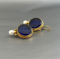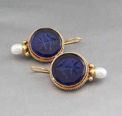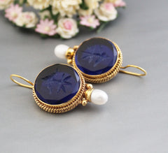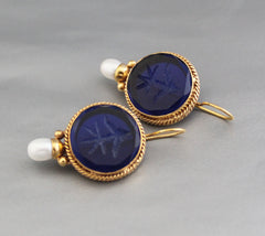 Indigo Blue Intaglio Antique Earrings