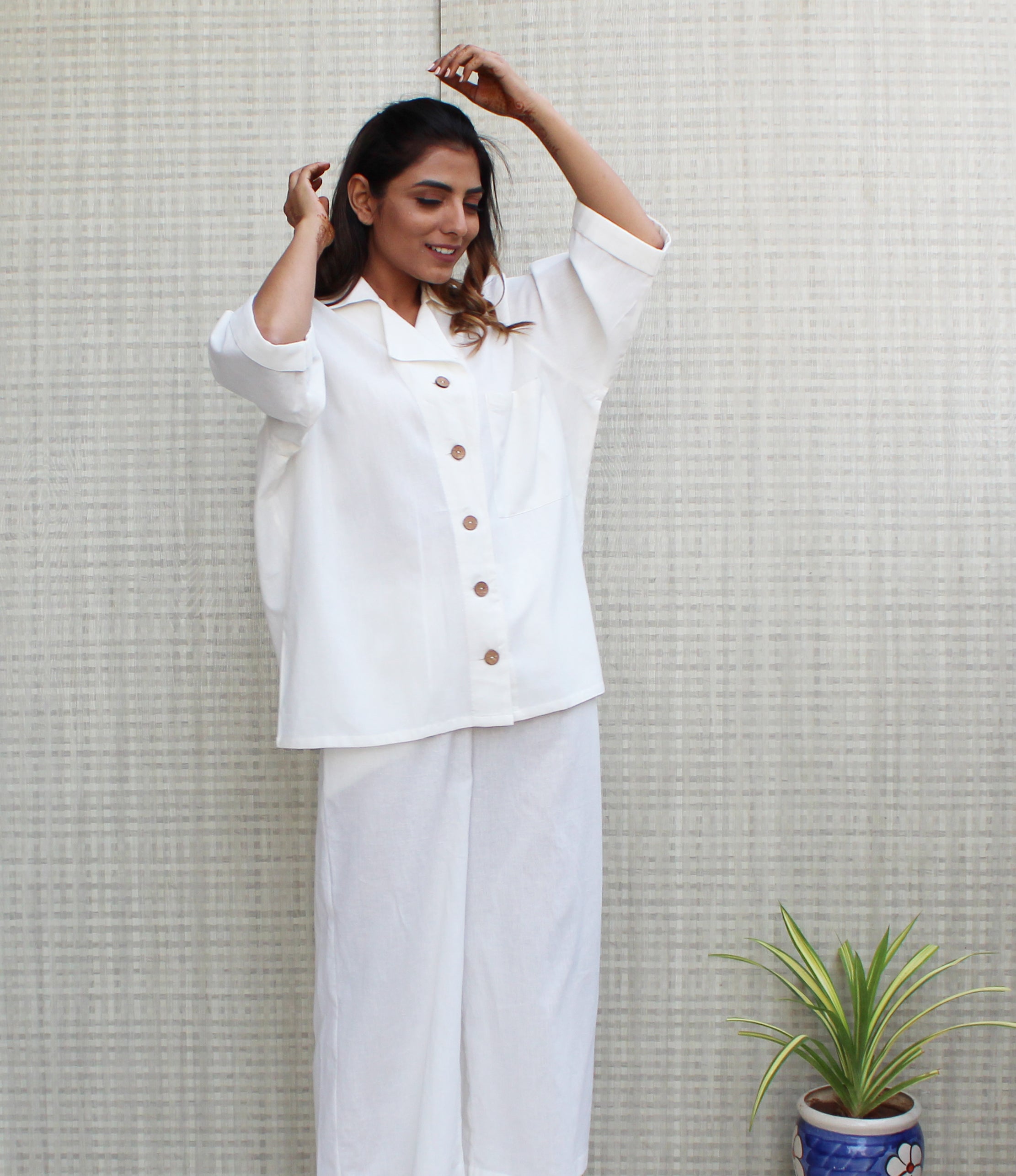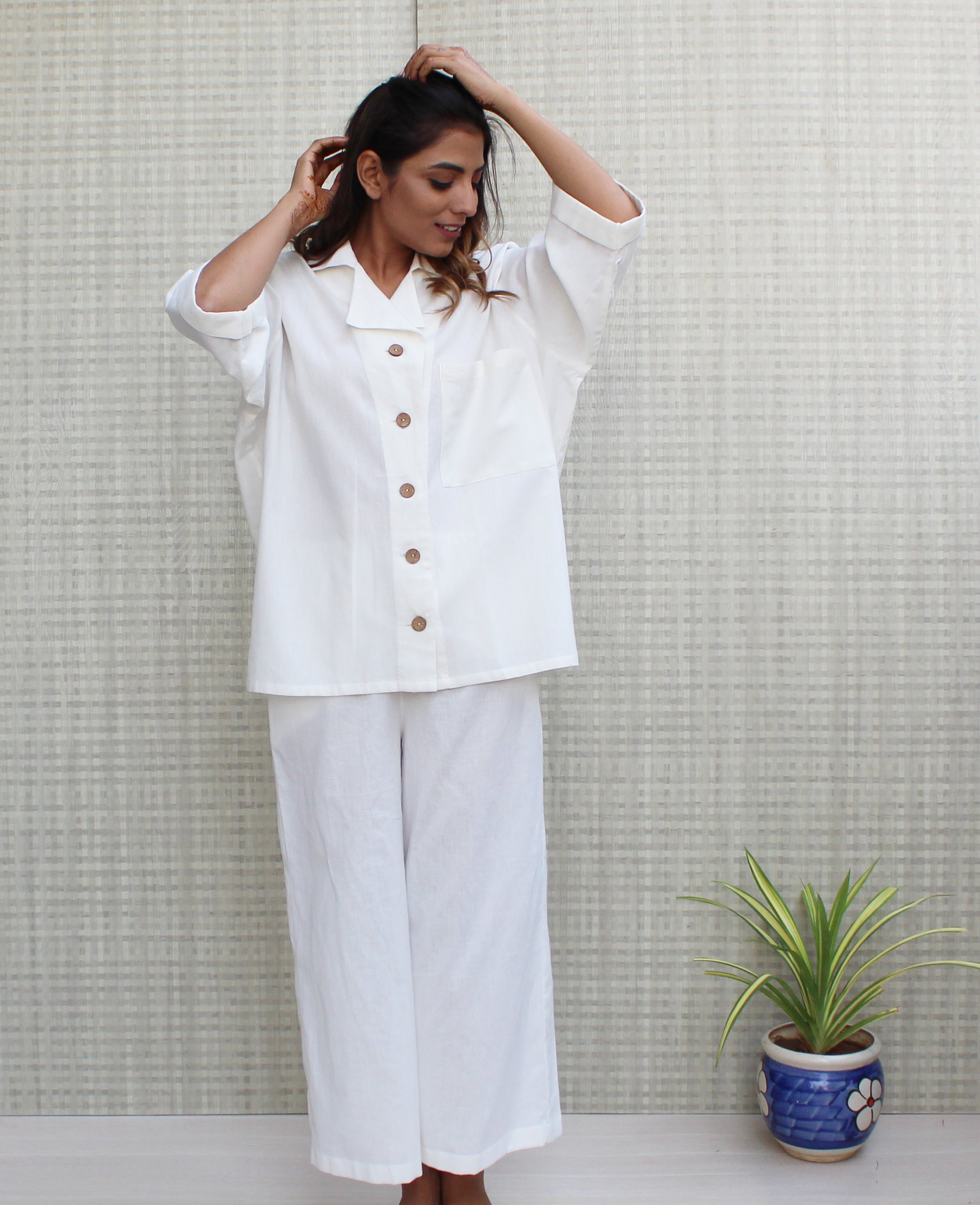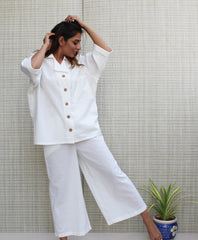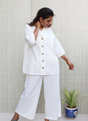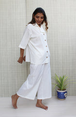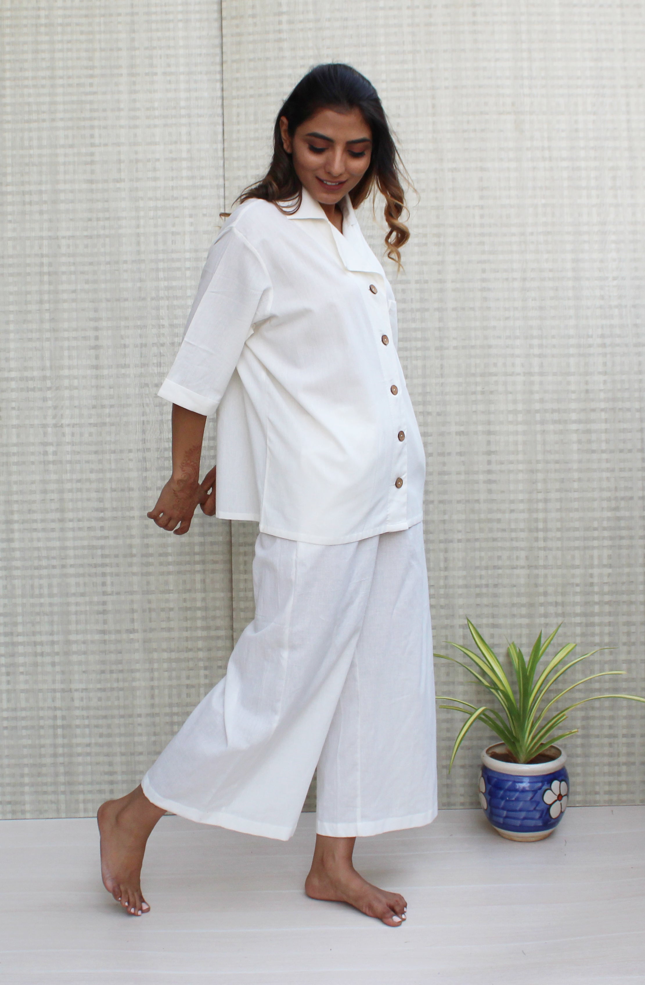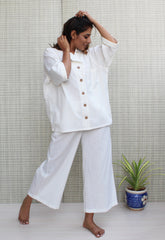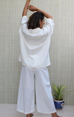 Experience effortless style and comfort with these White Wide Leg Ankle Length Pants. Designed with an elastic waistband, they provide a flexible fit that adapts to your shape. The wide-leg cut offers a modern silhouette while ensuring ease of movement, and the ankle-length design adds a contemporary touch suitable for both professional and casual settings. Crafted for versatility, these pants are a refined addition to any wardrobe.