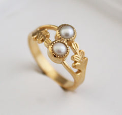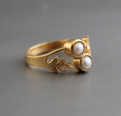 Natural Pearl Ring, Dainty Gold Ring