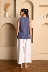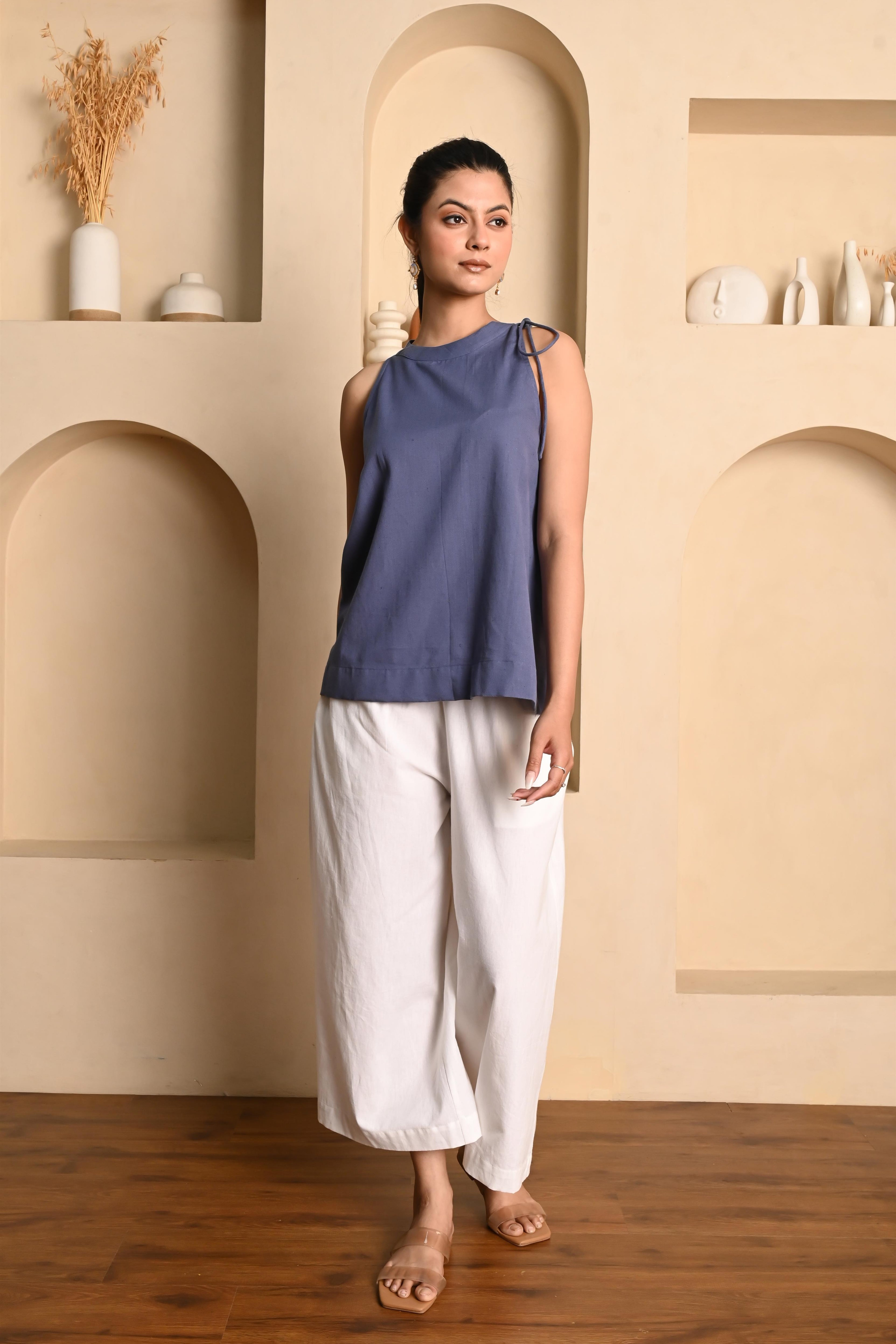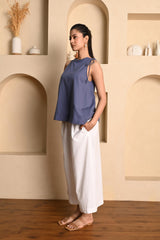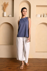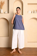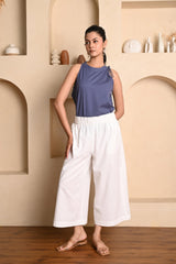 White Wide-Leg Cropped Linen Pants with Elasticated Waistband