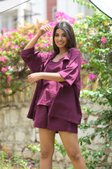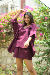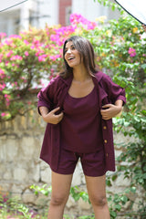 Crafted from breathable linen, this wine-colored sleeveless camisole offers a refined blend of comfort and style. Its lightweight fabric ensures all-day wearability, while the rich hue adds a sophisticated touch to any ensemble. Ideal for layering or wearing solo, this camisole combines effortless elegance with practical design.