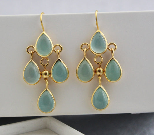 Description Healing with Chalcedony♥ Emotional balance ♥ Vitality ♥ Stamina ♥ Endurance ♥ Energy ♥ Intensity ♥ Hardiness ♥ Nurturance ♥ Generosity ♥ Liveliness ✦Gemstone: Natural Aqua Chalcedony✦Stone Cut: Pear✦Stone Size: Approximately 7X9 mm Note -The earrings are made to order, production day is about...- $40.00