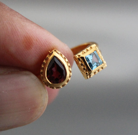 Garnet Ring, Blue topaz Ring, Dainty Gold Ring - GOLD