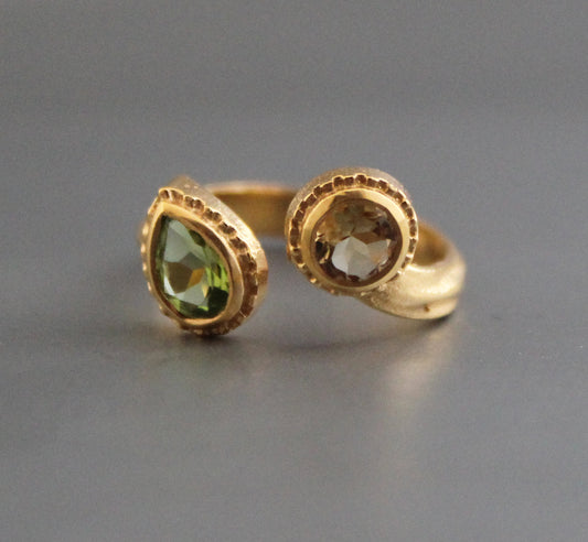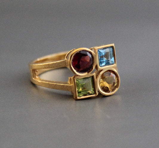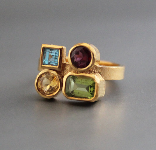 Garnet, Citrine, Peridot, Blue topaz Ring, Dainty Gold Ring, - GOLD