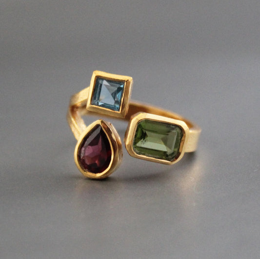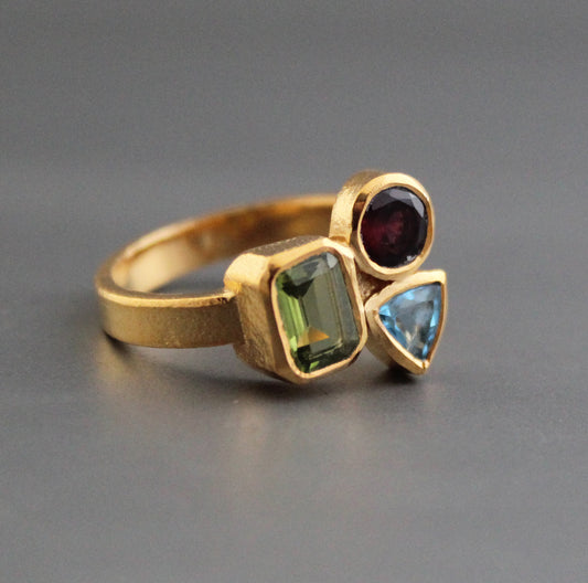 Garnet, Blue topaz, Peridot Ring - GOLD