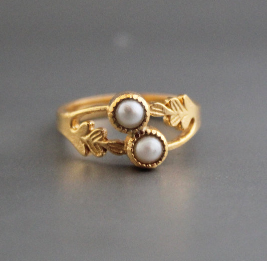 Natural Pearl Ring, Dainty Gold Ring - GOLD