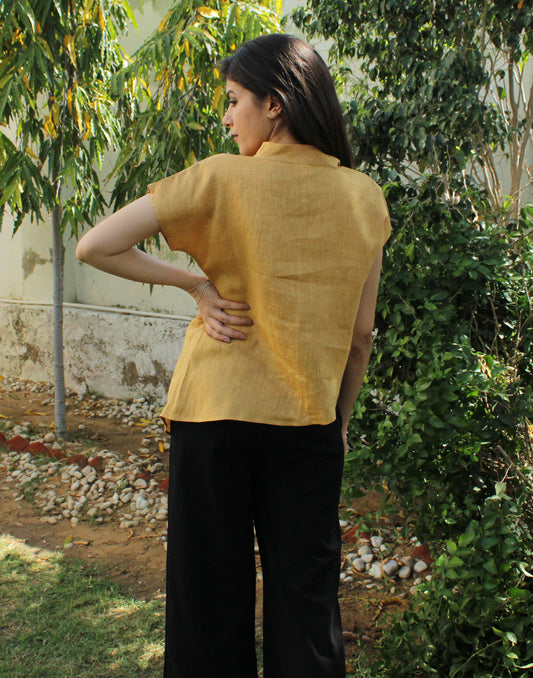 Black 3-Piece Linen Co-Ord Set with Camisole, Shirt, and Shorts